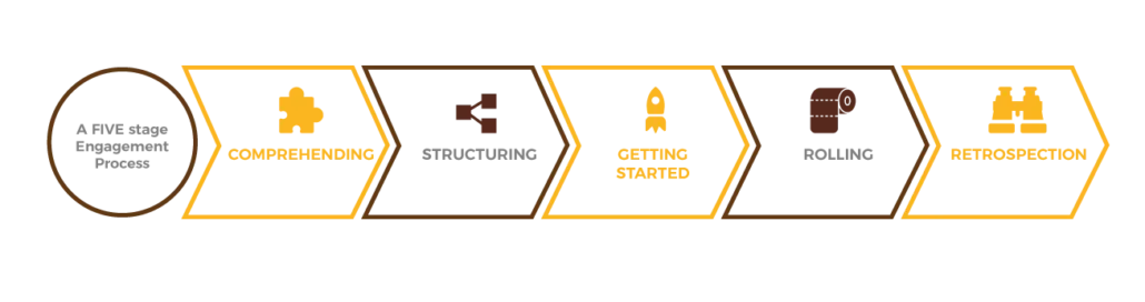 PSM serves as a monthly SCRUM with visibility to the client. Apisdor Project Manager is the one who facilitates the progress of the meeting. The meetings consist of tasks, reviews, issues and escalations, solutions, and post-meeting acknowledgments and confirmations.